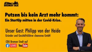 Unser nächsten Bremen-Talk findet statt am Donnerstag, 15.04. um 18.30 Uhr:  „Putzen bis kein Arzt mehr kommt: ein StartUp mitten in der Corona-Krise“